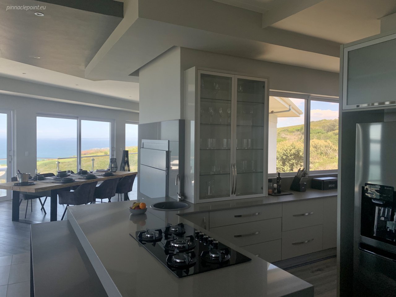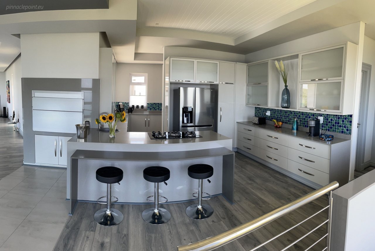 Look forward to free 200 mbit/s WLAN with fiber optic connection with a WLAN router in each bedroom, 5 smart TVs, a cozy open gas fireplace and a top equipped kitchen luxury kitchen. The modern gas stove allows a panoramic view of the Indian Ocean while you prepare meals. In the transition area between the kitchen and the dining area there is also a braai for BBQ which definitely takes your BBQ event to a new level.