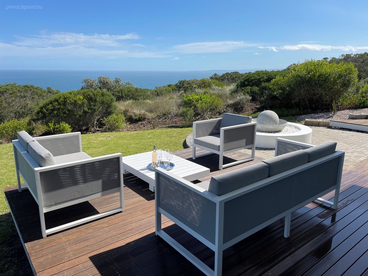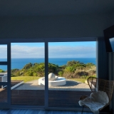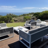 Surrounded by the ocean and South African fynbos gardens, the ocean-facing terrace and balcony at the first floor offers breathtaking views and invites you to spend relaxing evenings with spectacular sunsets.